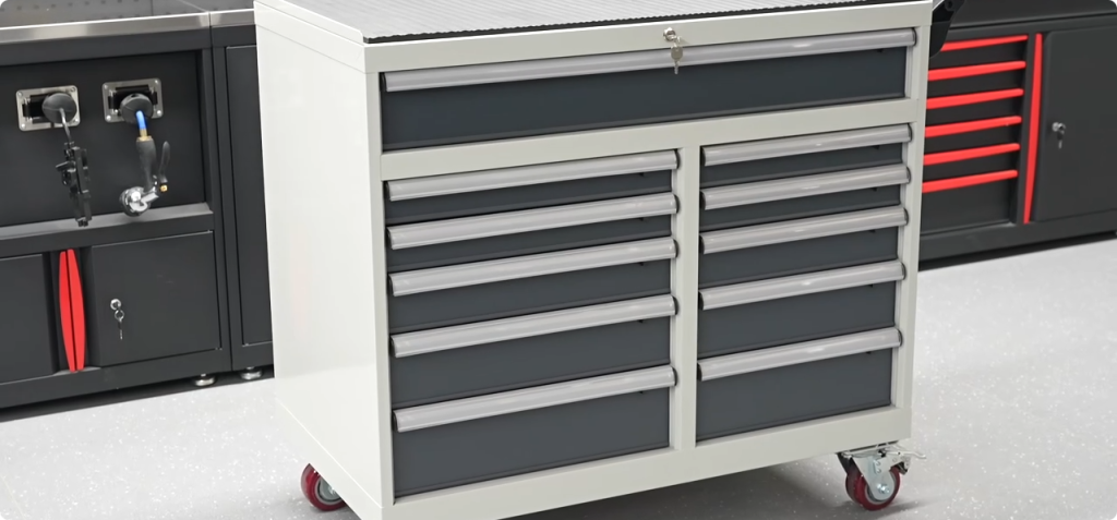 Automotive tools can be heavy and frequently used, so durability is critical. High-quality automotive storage cabinets are typically built from reinforced steel structures with strong drawer slides designed to handle substantial loads.