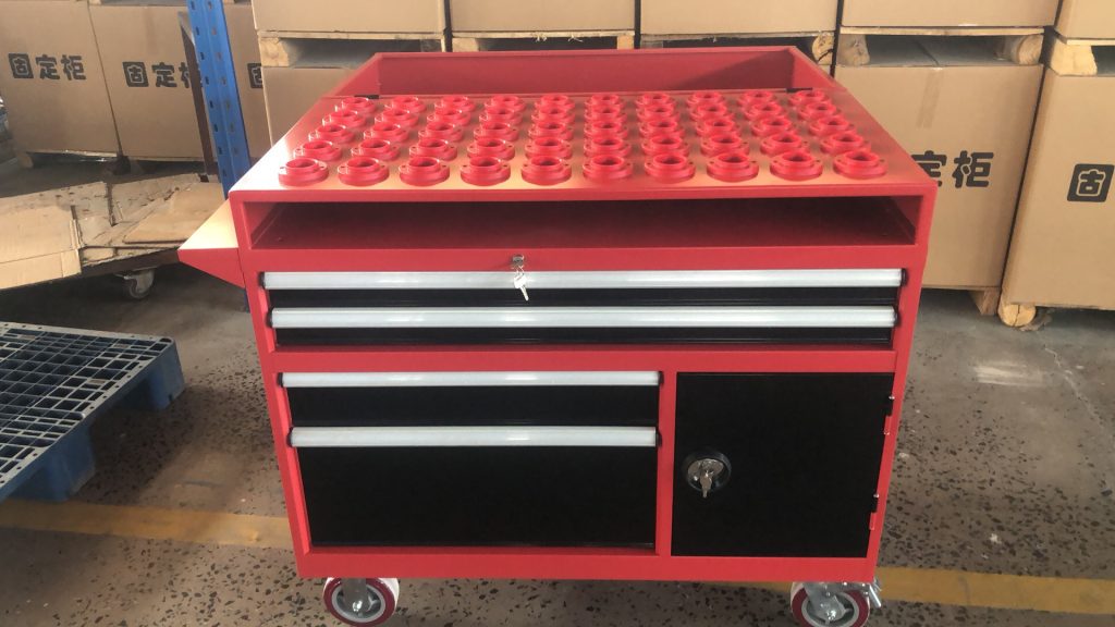 The upper work surface of the CNC tool holder trolley is equipped with: