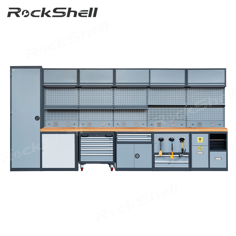 -All the base cabinets are equipped with adjustable feet, to keep the workbench stability and even on any floor situation.
