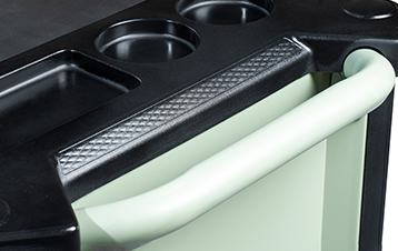 The top of the tool cart is injection molded on both sides with a pre-installed divider frame for easy workpiece storage.